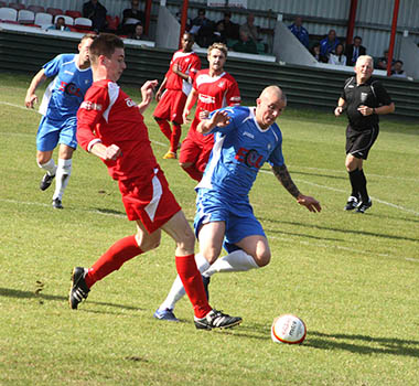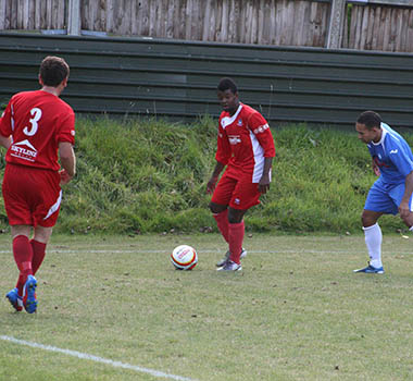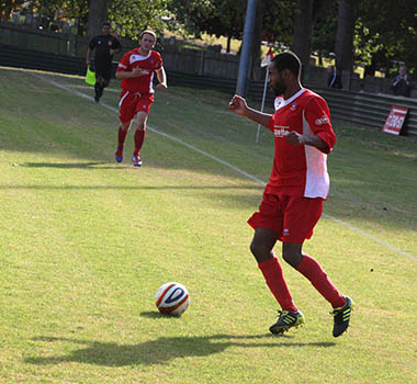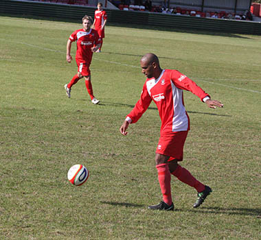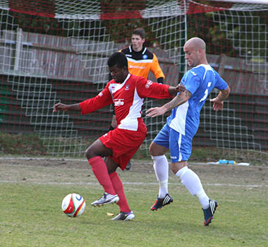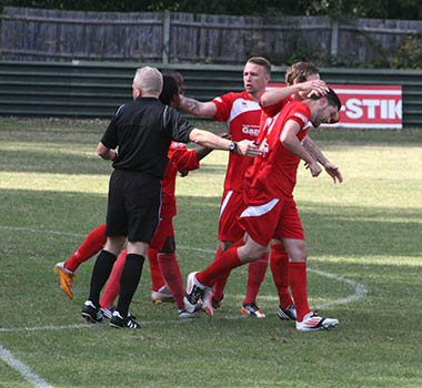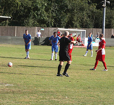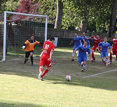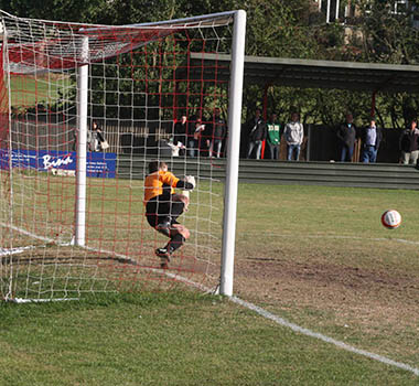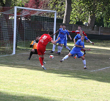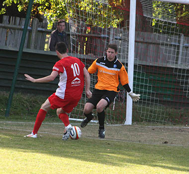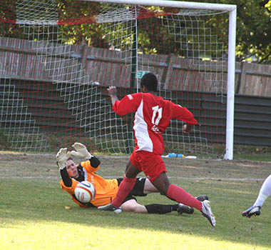 A matter of minutes later and with the hosts backpedalling, Lee Burgoyne let rip from the edge of the eighteen yard box and he was not too far away from hitting the target. The pressure was coming from all angles and inevitably it forced an equalising goal. A clever through ball sliced open the Northwood defence, but full credit must go to front-man Bernard Christie, who steadied himself and then belted an unstoppable driven shot high in to the net that left the goalkeeper with no chance. 1-1, and all to play for with fourteen minutes remaining.