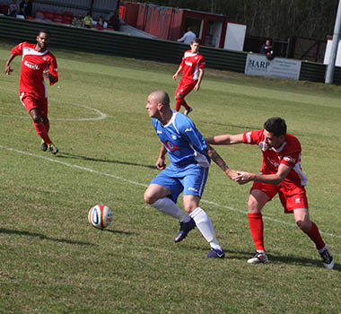 However, the Bedfordshire based outfit were to demonstrate why they had hit thirteen goals in the FA Cup prior to today’s meeting as they tested James Reading for the first time in the afternoon. Jason Blackett controlled a cross well, and hit his effort having been given time on the edge of the box, although it was easy for the home goalkeeper Reading. A short time later and the experienced Craig White – as he has done numerous times this season – broke up the play on the right side of the box at the expense of a corner kick, the visiting parties first of the afternoon.