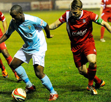 Suddenly the onus was with Northwood and they were almost in front after 37 minutes. Worman curled a free-kick over the wall and Bevan dived to keep it out but the ball ran loose and Osei was quick to fire for goal. The ball took a slight deflection which should have been enough to take the shot past Bevan but the keeper thrust up a strong hand and it was enough to push the ball over the bar.