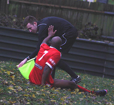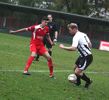 On a soggy pitch, the Woods produced a sublime display to end the unbeaten away record of newly-promoted St. Ives Town with their sixth successive victory which equals their best run of form for over ten years. It was no real surprise that Mark Burgess named a starting line-up that was unchanged from the previous week’s win at Beaconsfield. After an impeccably observed minute’s silence that encompassed both Remembrance Day and the passing of supporter Phil Everett, the two sides both looked to start well in defence of their recent records.