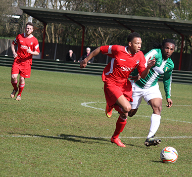 Northwood’s response was swift. Andy Lomas fired a shot that just cleared the bar and then a change of formation saw top scorer Ismael Ehui introduced for defender Payne. Their attacking ambitions were rewarded on 62 minutes as Rob Hastings raced onto a Muir flick and got ahead of his marker before a cool finish saw him beat Green to level the scores. Just three minutes later some persistent attacking play from Hastings saw a ball run to Lawrence and his cross was headed home by Perry Dicker with Green unable to do more than push the ball into the net.