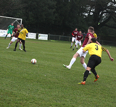 Northwood were still looking the more dangerous and they took the lead after 24 minutes. Muir played a defence-splitting pass which again allowed the pacy Hastings a run at goal from the right. He squared the ball to Perry Dicker who had burst from midfield and although his effort was blocked by a defender on each side of him, he reacted quickest to reach the loose ball and turned to fire into the top corner and put the Woods ahead.