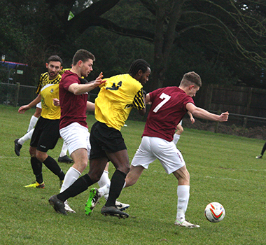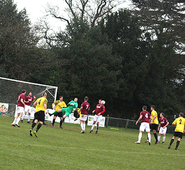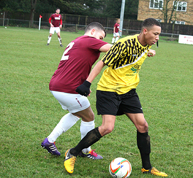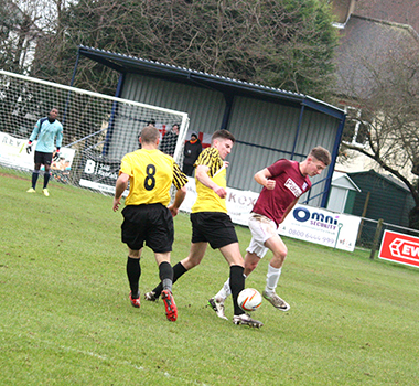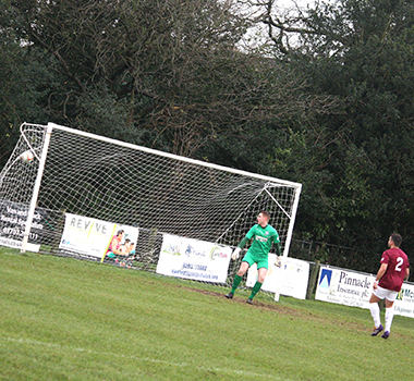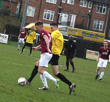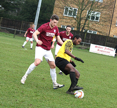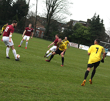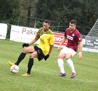 Three minutes later, Potters Bar had to defend well to block a header from a corner and then also Dicker’s effort from the rebound while Vassell skewed his shot well wide. On the half-hour Vassell made good progress from the left to get into a shooting positon but missed his chance and although Lomas followed through, Underwood saved comfortably at the near post.