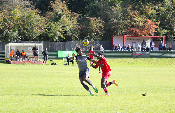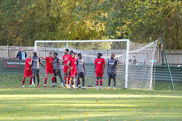 The game started with both teams being cautious and only seeming to be able to string a few passes together in their own half whilst only using long balls to progress through the pitch. Despite Merstham having the first chance of the game with Stewart’s wide header, it was Northwood who were the team to take the lead. In the 12th minute, debutant Akintunde had nicked the ball off Malakai Hyman, a couple of passes were put together and the ball was played out wide to Ibie, which he set back to Lomas who swung a peach of cross in.