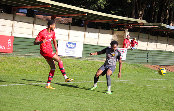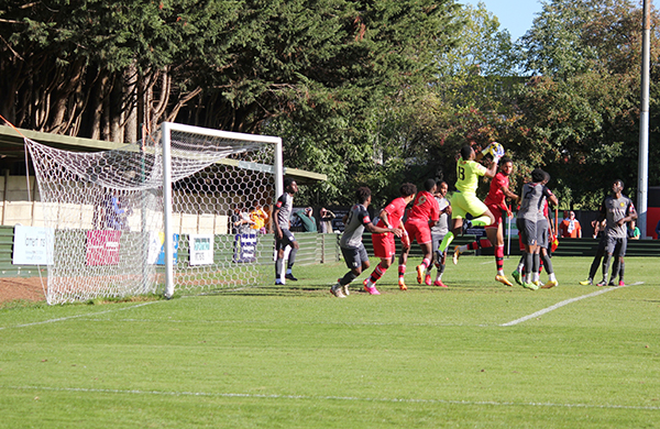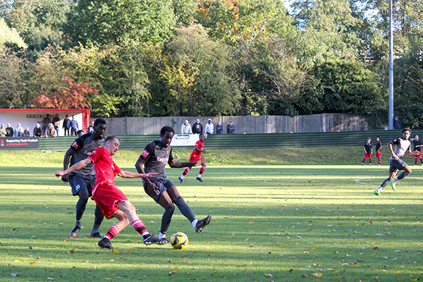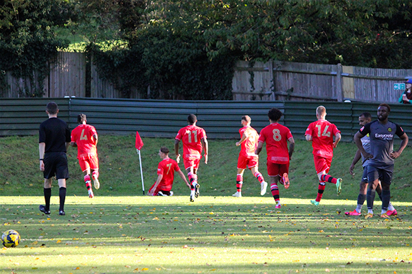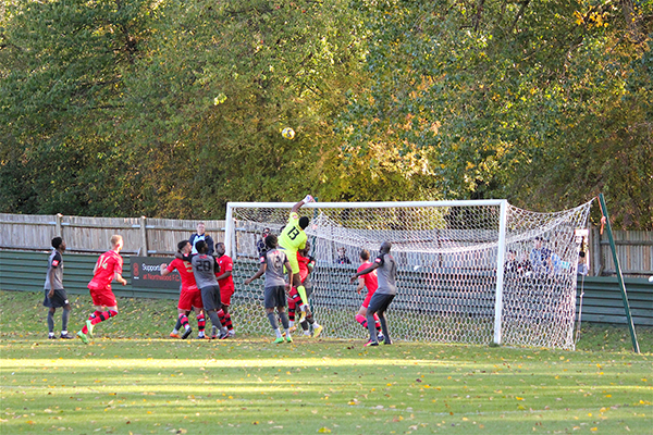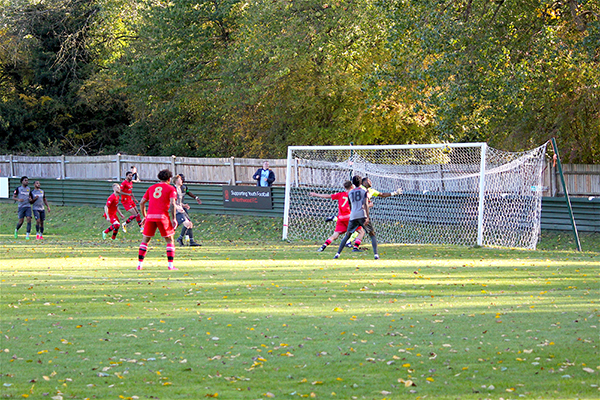 Merstham soon saw their efforts rewarded in the 23rd minute when they managed to breakaway swiftly on the counterattack after a Northwood throw was hooked away. Lorenzo Lewis ran through and played a neat ball towards Charles Greenwood and with the help of a slight deflection, the ball travelled past an unfortunate McCorkell to make the game level.