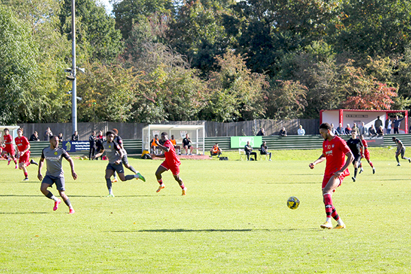 Merstham were growing in confidence. Their defence looked compact and composed and the team just seemed to be clicking. This was evident in the 40th minute as captain Michael Kamara played a long ball out wide to Lorenzo Lewis, who expertly flicked the ball on with the outside of his boot. The number 10 continued to stride forward towards the keeper, where he emphatically finished into the far corner to make it 2-1. Merstham had taken the lead for only the second time of their season and Northwood seemed shellshocked.