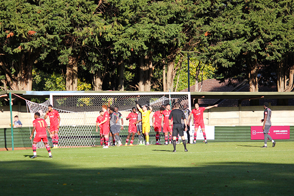 From the 70th minute we saw many breaks in play, and it appeared Northwood’s best defender on the day was the linesman and his offside flag – much to the frustration of the Merstham players. The fans remained in full voice and created an amazing atmosphere which certainly contributed to Northwood’s willingness to keep hold of the lead. That stubbornness was nearly broken during stoppage time, however, as Sankoh raced down the left wing and zipped a good ball into the box and directly onto the head of Lewis. With the game he had, you would’ve bet money on him to bag another but in this instance, it just wasn’t meant to be as he smacked the bar from close range.