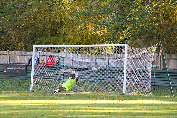 Unfortunately for Lindell Stewart and his team, it appeared he bit off more than he could chew whilst trying to defend against Ibie in his own box. In the 58th minute, the former Wood made a mark on his return to The Skyline Roofing Stadium by being drawn into a diving tackle and giving away a penalty after Ibie shimmied past him. The latter then stepped up and slotted it into the right corner to score his fourth spot kick in five games but more importantly, Northwood were back on level terms.