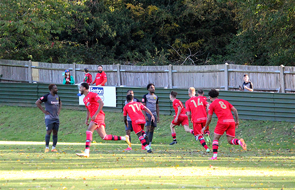 This home side were buzzing and almost instantaneously they got another chance. Sydney Ibie got down the left-hand side again, this time playing a looping ball towards the back post where Jake Tabor was waiting patiently to head the ball in off the bar for his first goal in a Northwood shirt. 3-2 to the home side!