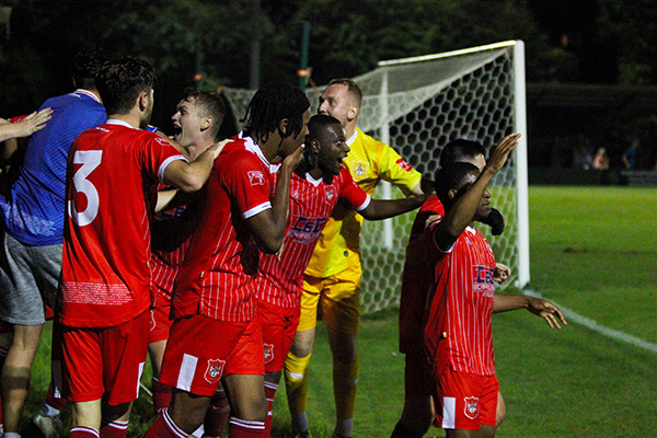 However, with a minute of stoppage time played, Woods worked the ball up to Williams once again on the edge of the box and as the advancing Rackley-Hayes looked to smother the danger the striker checked back to play the ball into the path of Carl Stewart, who kept his composure to sweep the ball home to send players and supporters into delirium with Northwood booking a home appointment with Cray Valley Paper Mills in the next round.