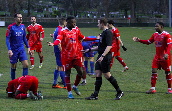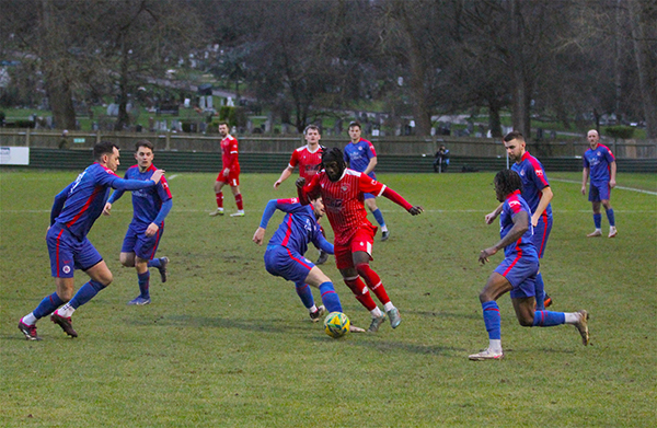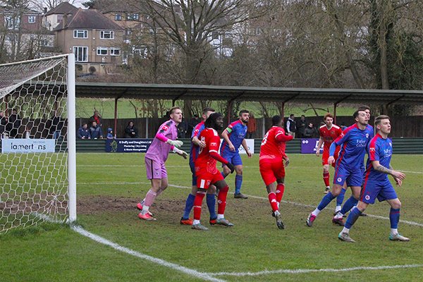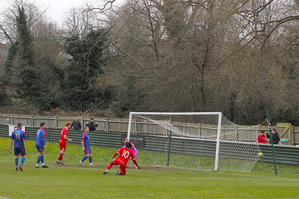 But after 73 minutes Raynes Park were in front. A corner was half-cleared, headed back into the box by Dan Moody, flicked on again by another head and it freed Penny to smash the ball into the net from close-range.