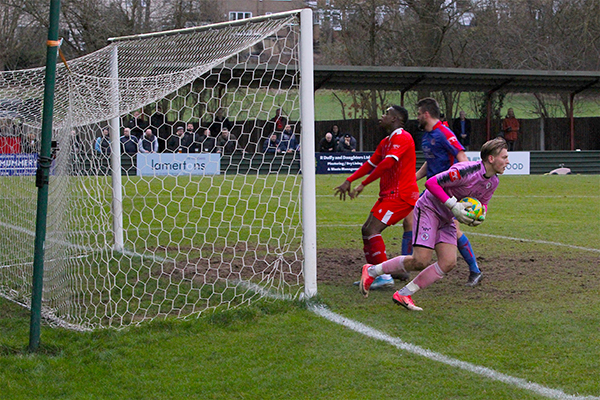 But the Vale were starting to threaten and Browne came to Northwood’s rescue to smother another accurate header as Charlie Penny looked to swoop. On 43 minutes, a corner was swung over and headed on Archie Harland-Goddard and Danny Dudley struck a shot on the half-volley that flew into the net. The visitors went close to grabbing the lead just before the break as Jordan Gallagher curled in a cross from the left but again Browne did well to save under pressure.