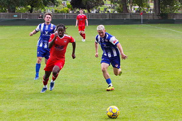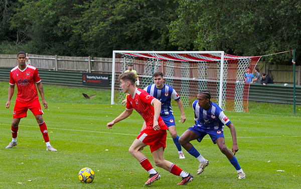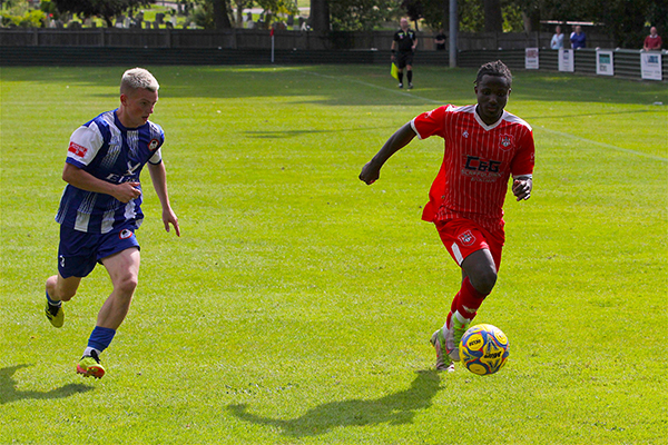 There was a fairly even start to the match as an early effort from McAllister was off target and a header from Ben Holder also went wide of the target. At the other end there was a half-chance for the Woods but two players rather got in each other’s way and the shot was blocked.