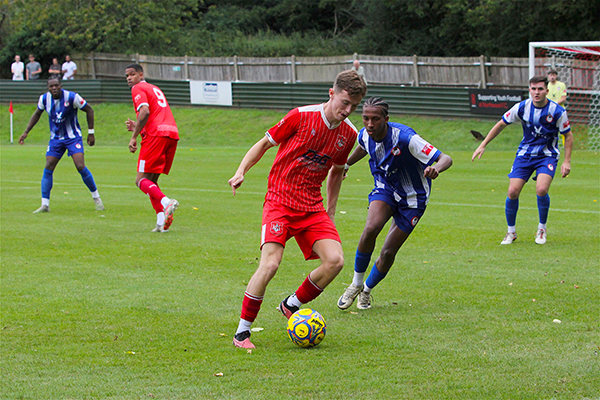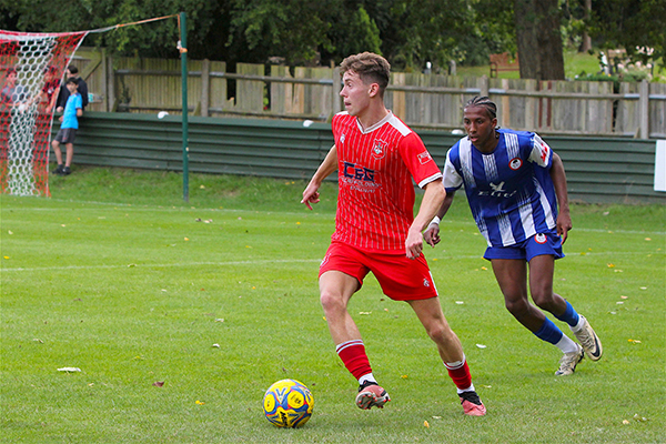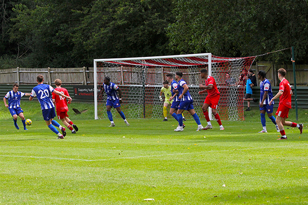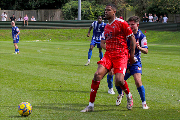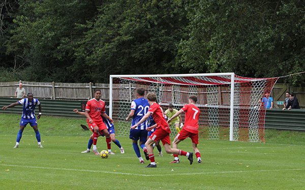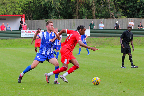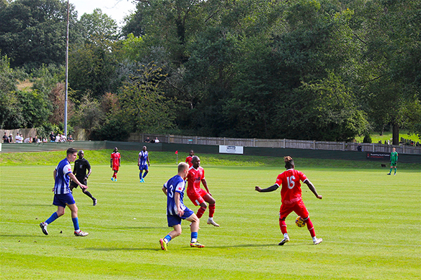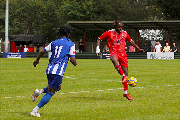 Northwood’s starting line-up included five players that were making their Woods debuts – Sam Odusoga, David Agyemang, Jack Empson. Mano Oke-William and Ibrahim Lukulay. Harry McKenna had made a welcome return to the club at the last minute, having been with Hanwell Town in pre-season, and last season’s young player of the year slotted straight into the side. Only two others remained from the end of
