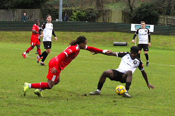Manager Gary Meakin rang the changes at the break, bringing on Junior Paiva, back from injury, for Etienne while Jeremy Stewart replaced James to add a bit more solidity to the midfield area.
