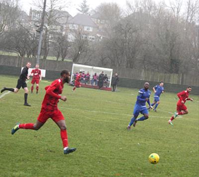 The persistent rain had relented during the interval and Northwood resumed in a positive manner as they created a succession of useful openings, with Pink seeing his shot gathered by Anguzu before another effort was inadvertently blocked by his team-mate Lopes. Woods kept up the momentum and another incisive move saw Lodovica feed Gabriel Piorkowski whose curling shot narrowly flew wide of the far upright.