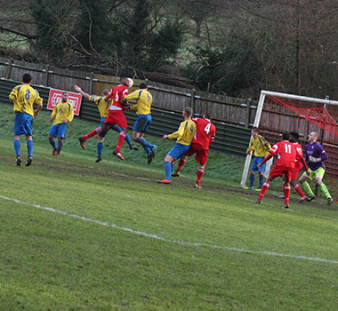 The game became more open as the half wore on. Niko Muir fired a shot wide and then Ashley Artwell did likewise for Sycob before Deadfield got the better of Steve Brown to get in an angled shot that was not far wide of the post. But the Woods were looking more dangerous and after Muir had seen one good strike pushed wide by Bunting for a corner, Louis Stead knocked in a deep ball, James Budden headed it back across goal and it was Muir who headed home from six yards.