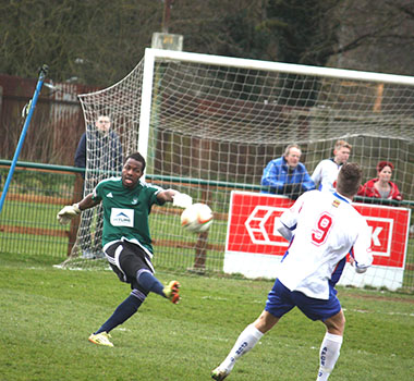 But there was very little to entertain the large crowd at Wellingborough’s ground as the Woods defence, with James Budden restored to the centre having missed the midweek trip to Petersfield, gave little space to the home strikers. An early Andy Hall free-kick was headed on by Jason Lee but Berkley Laurencin claimed the ball comfortably and after 11 minutes Claudiu Hoban cut in from the left and fired high and wide with the first real attempt on goal.