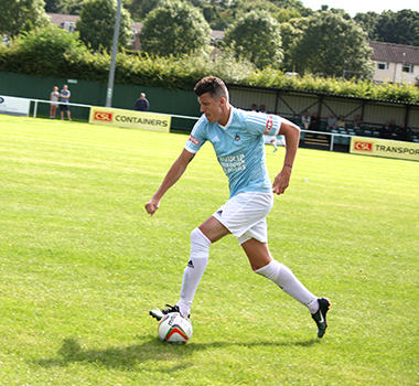 The home side could not have had a better start. They quickly won possession, knocked the ball forward for skipper Sam Argent to chest the ball down to debut strike partner Paul Hodges who neatly chipped Voss for the shock opening goal. The time; just 47 seconds into the new season. It allowed Hartley Wintney to settle very quickly and the Woods struggled to get any sort of attack flowing. Control of the ball was lost in midfield and Hodges raced for goal but this time his shot flashed wide as the Row looked to threaten again.