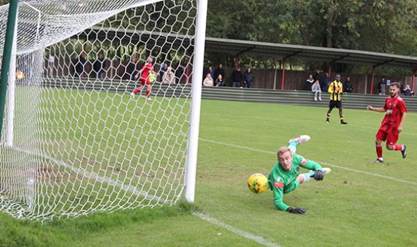 And the Northwood stopper took that form into the shoot-out, as he had done a couple of weeks earlier in the F.A. Cup, saving two penalties including the first and fifth Basildon efforts after Dickson, Kuehn, Totesaut and Thomas had converted, to win the tie for Woods.