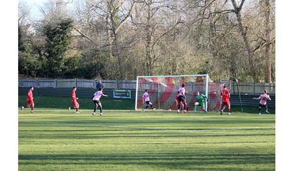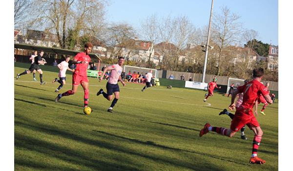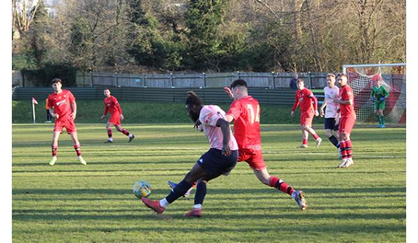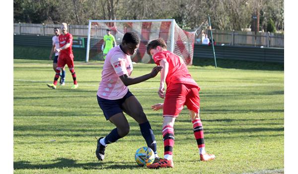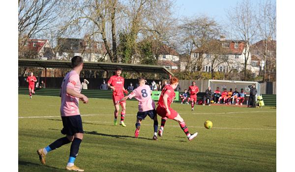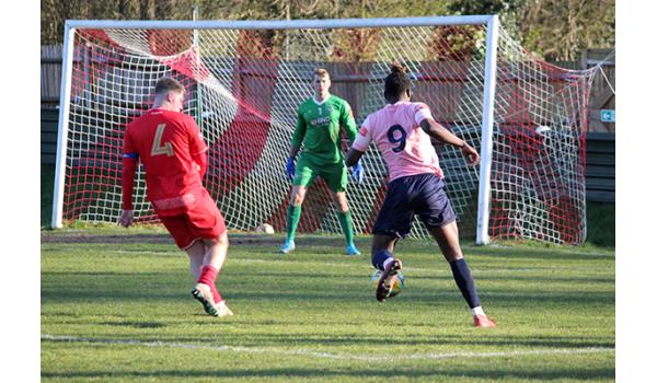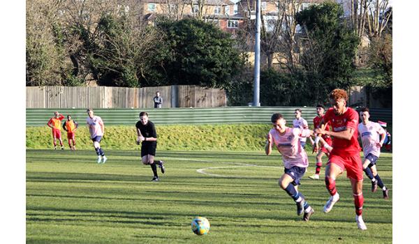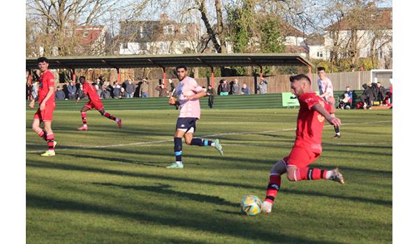 Woods would have been confident of building on the perfect start, but it was the visitors who began to look the more dangerous as Purdue was quickly off his line to deny Jack Beadle after being played in by Tom Smith. And the Northwood keeper breathed a huge sigh of relief moments later as a mishandle presented Andy Kabuikusomo with an open goal, but with time and space to convert, the Chipstead number 9’s shot rebounded off the far upright and was scrambled clear.