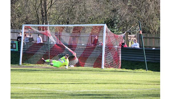 And Northwood were rewarded for their early efforts as they took the lead on 13 minutes from the penalty spot after Sydney Ibie was impeded by Callum McAllister as the Woods attacker cut in following a flick-on from Helmore, Cole sending keeper Matt Kerbey the wrong way for his fifth strike of the season.