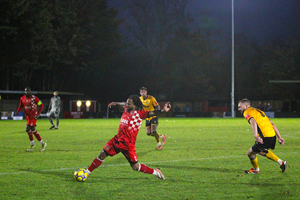 Aylesbury’s Rocko Tamplin always looked dangerous pushing forward from midfield and his shot on 57 minutes was well blocked to deny a good opportunity to add a second while, at the other end, Osa Otote finally found enough space to knock in a cross to the far post where Dan Williams was just unable to get a finishing touch.
