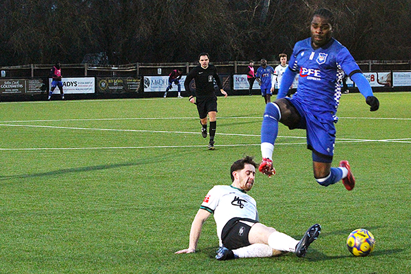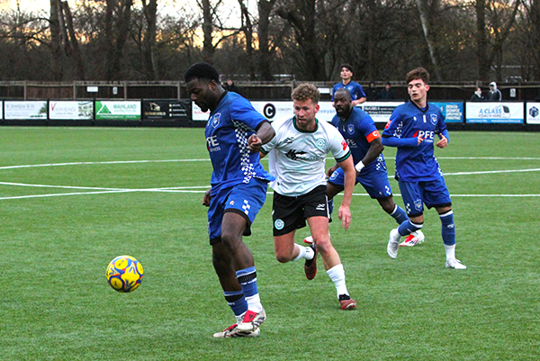 Northwood’s first excursion into the danger-zone came on 15 minutes when Otote picked up the ball in his own half and sped down the left before cutting back across Bell and knocking in a centre which saw Jon-Jo Bates just beaten to it by Lawrie Marsh who was able to clear the danger while also getting a whack on the ankle for his woes.