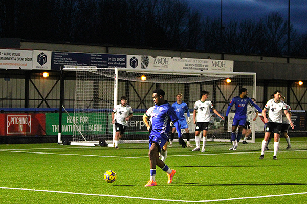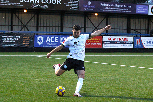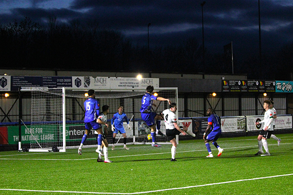 Biggleswade were still looking dangerous but with the visitors gradually getting more of the ball with Freddie Ford and Atkinson both making some inroads and they forced a corner on 29 minutes from which they had a chance of an equaliser. Carl Stewart’s ball in was headed out to the left-edge of the box and Dan Williams played it quickly to Bates who had plenty of space in the box but perhaps rushed his shot and it was always rising over the bar.