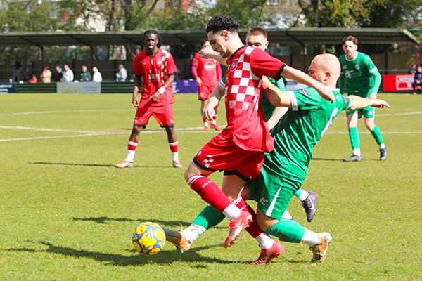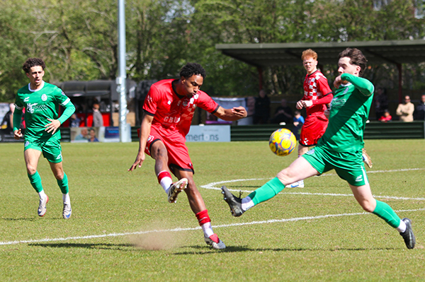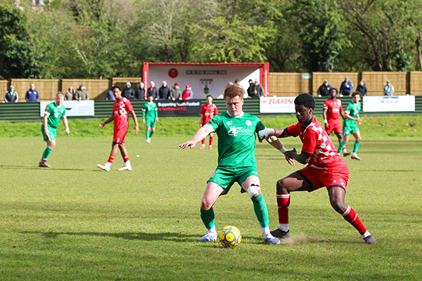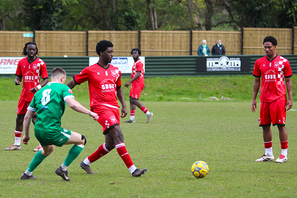 With top scorer Alie Bangura serving a one-match suspension, there were a couple of changes to the side that had picked up a creditable 4-4 draw at Beaconsfield on Easter Monday as in came Hamid Seisay, Freddie Ford and his Under 18s teammate Bilal Sajid Ouardi for his debut. Aidan Tarrant