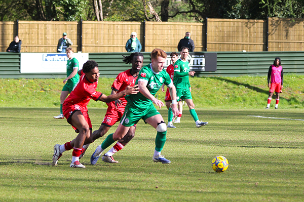 kept his place in the centre of the defence and there were also places on the bench for two further players from the successful Under 18s side in Chase Matthew and Michael Kelly. It was Northwood who made the better start to the match and they went close after just five minutes when Arel Amu backheeled a Freddie Ford corner at the near-post and it needed a block on the line by Ethan Kessel to prevent an early goal.