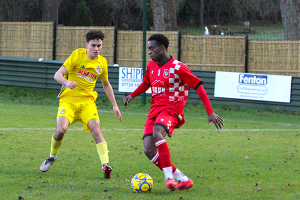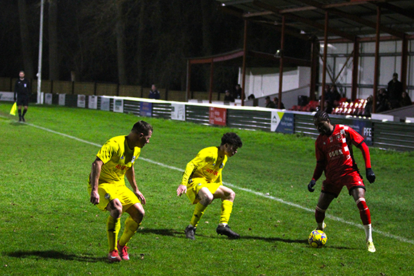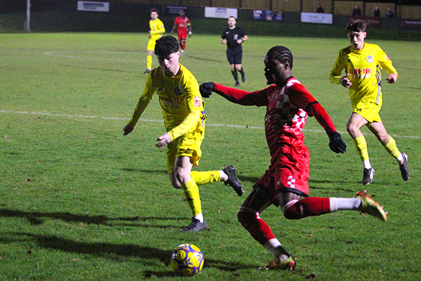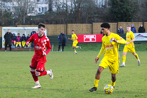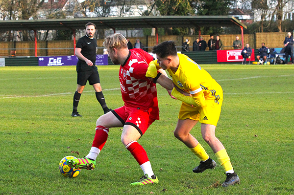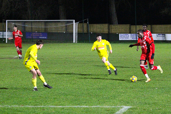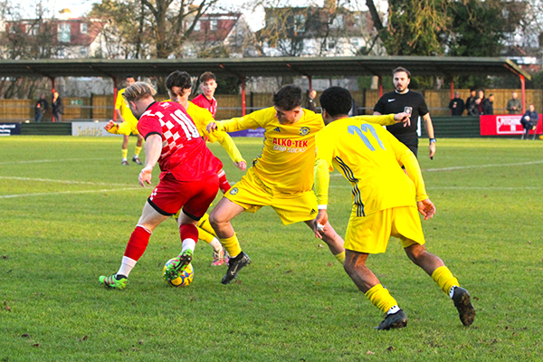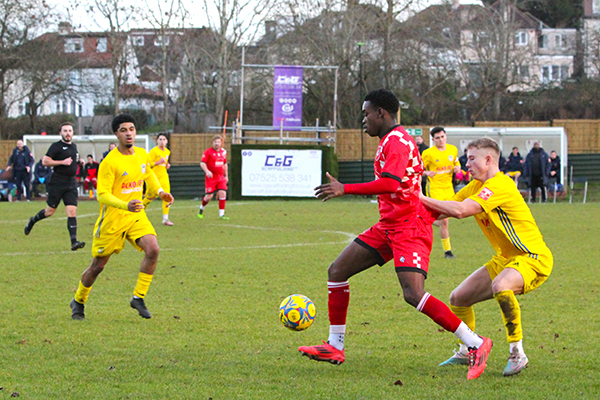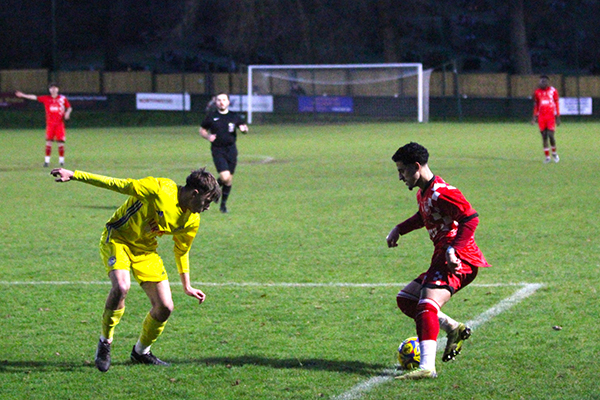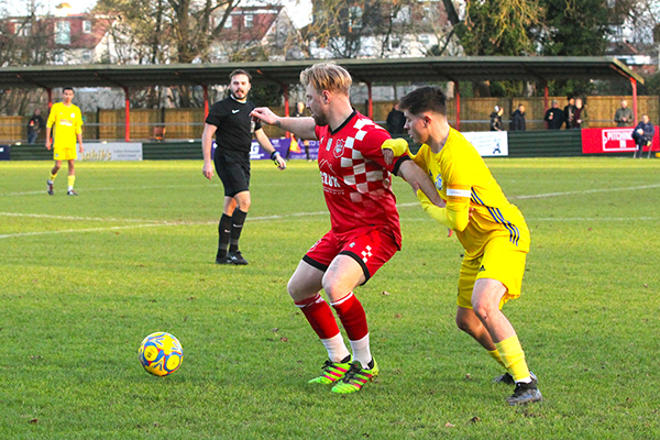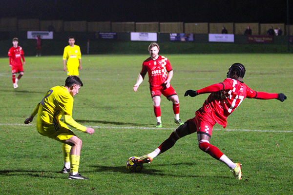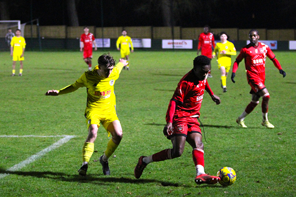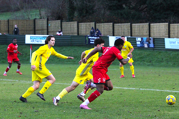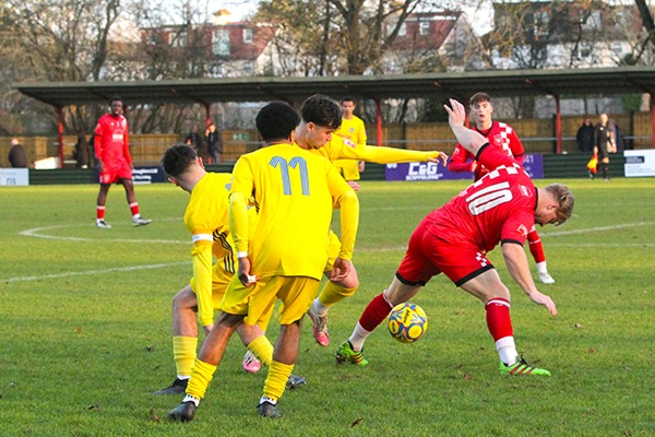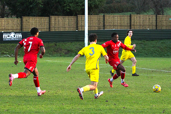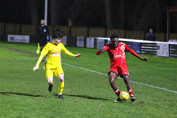 Hertford were knocking the ball around comfortably too and Gabe Cuthbert did well to head away a dangerous cross to concede a corner. Soon after, a deep cross was well controlled by Joe Nardelli and he got a sight on goal but crashed his powerful shot well over the bar.
