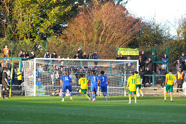 There were seven minutes added and it was in the second minute of those that Hitchin received a lifeline as Ford tripped a home player wide and close to the edge of the box and the Referee pointed to the spot. Substitute Diogo Freitas-Goveia was given the task of levelling the scores and although Al-Droubi dived to his right to keep out his spot-kick, he was unable to keep hold of it and the taker was quickest to the loose ball to fire home.