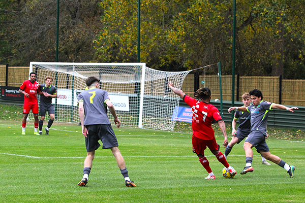 The Woods finally forged an attack on goal after 37 minutes when Jon-Jo Bates latched onto a header from Dan Williams and jinked into the area, shrugging off a couple of challenges before seeing a left-footed strike parried by Way. Beating the ‘keeper to the loose ball he knocked it back across goal but the danger was cleared.