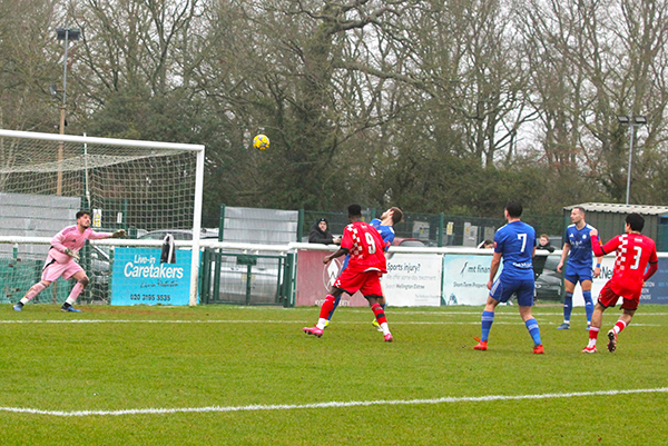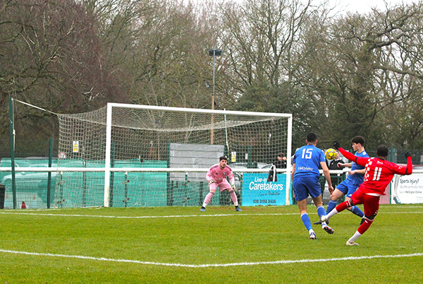 Back came Northwood through Otote, cutting in from the left and setting up Revin Domi for a shot which took a deflection off a defender and looped up and over for a corner. Nothing came of that but almost immediately a great ball from Andrew Osei-Bonsu picked out the run of Bangura but Bloohn was out quickly to just avert the danger.