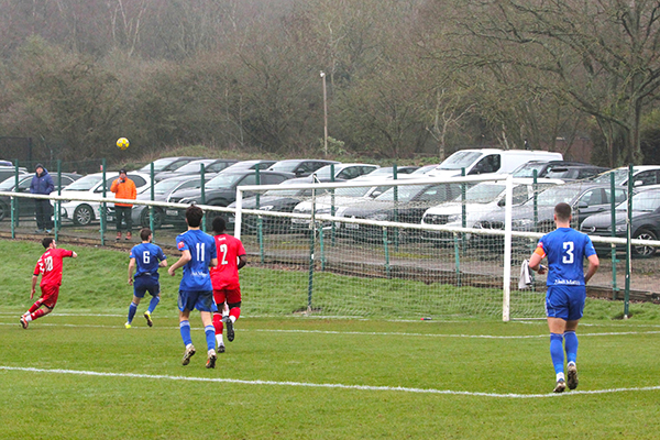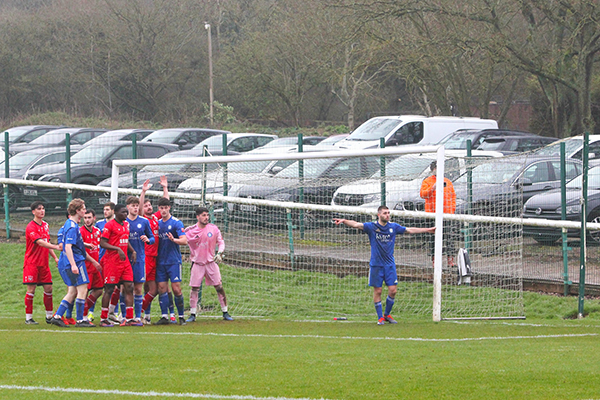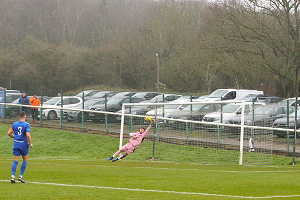 It wasn’t totally one-way though as Woods goalkeeper Ryan Kelly was also called upon to keep out a good strike from Max Kyte just before that and on 18 minutes, he also had to push away a long-range effort from Max Davis.