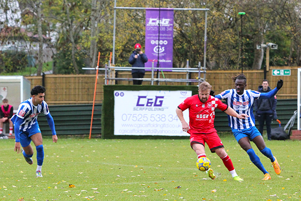 After back-to-back draws away at Hitchin Town and MK Irish, hopes were high for further improvement for being back at The Skyline Roofing Stadium. There was an enforced change with the departure of left-back Mack Miskin who took up an offer following an approach to join Hayes &