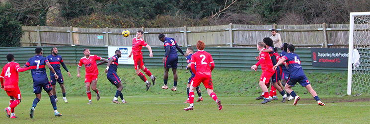 Woods defended strongly throughout against Hitchin attacking, and they took the lead in the 71st minute when teenager Freddie Ford charged down one clearance, then another to break through the middle and slot past former Northwood keeper Alfie Bonfield, for his first senior goal. But four minutes into stoppage time Hitchin were awarded a penalty - which Hafad Al-Droubi saved, only for the taker to net the rebound.