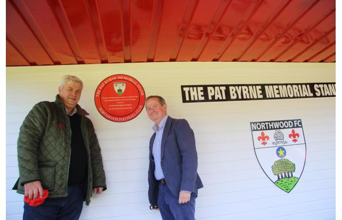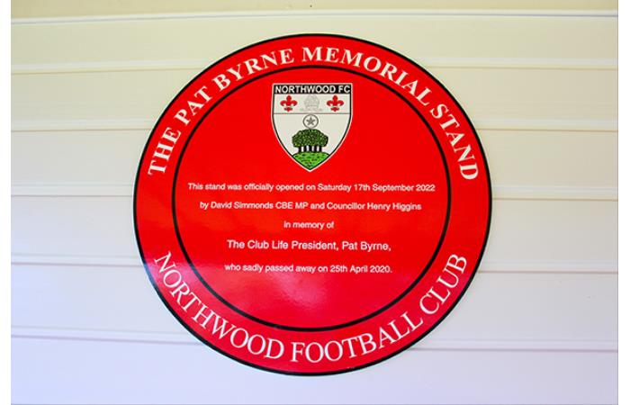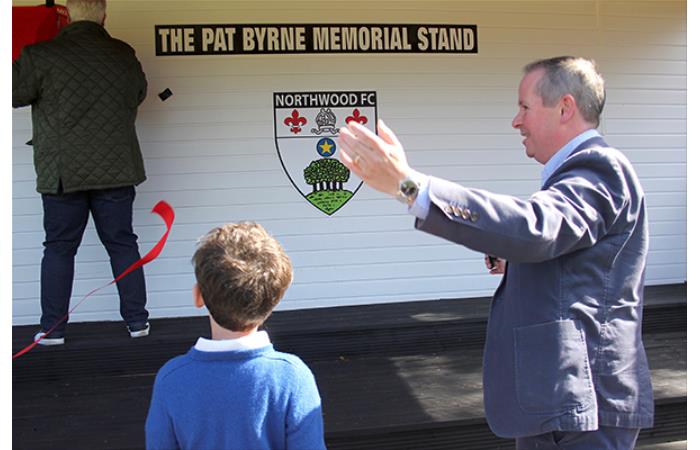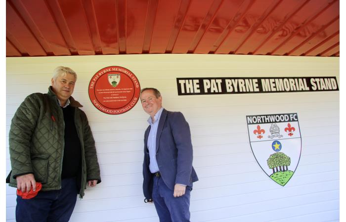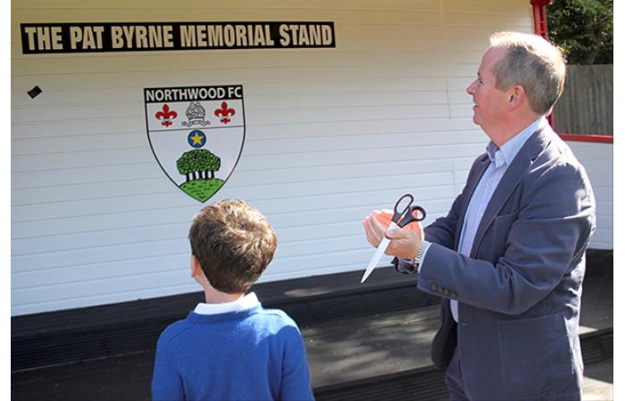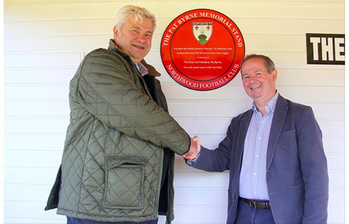 Prior to the game against Chertsey Town we were delighted to welcome the MP for Ruislip, Northwood & Pinner, David Simmonds CBE who, alongside Councillor Henry Higgins, performed the opening ceremony for the new Pat Byrne Memorial Stand.