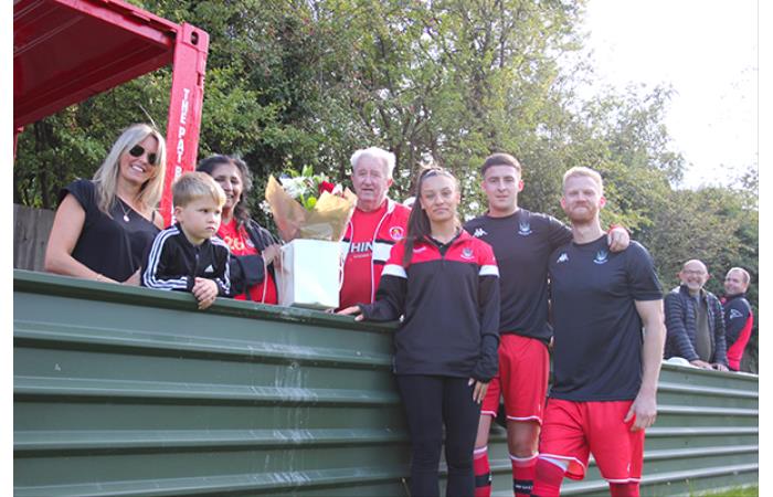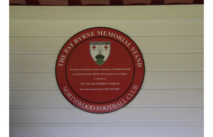 The covered accommodation has been positioned in an area that Pat used to say was his favourite viewing position in the ground and was purchased with funds received at our former Life President’s memorial match which took place last October at Northwood and involved two sides of ex-club legends and players from the past, plus family members.