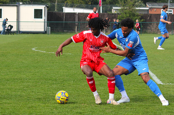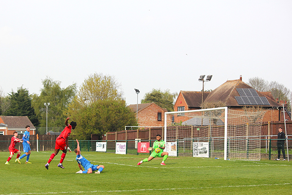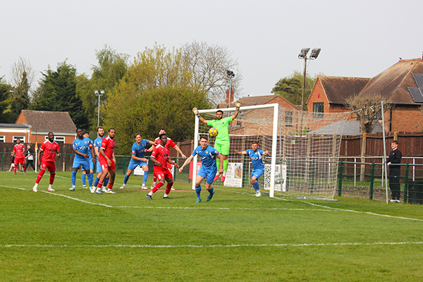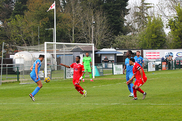 After that exciting start, the two sides mainly cancelled each other out in midfield with only a skied effort from Markel Cousins of note until Northwood were awarded a free-kick of their own on 23 minutes, wide of the left-hand side of the area. Troy Perez-Duah, successful from dead-ball situations recently, hit the ball well but it curled just over the top, skimming the crossbar.