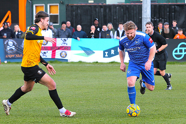 That didn’t have any immediate effect as Real Bedford continued to threaten with Setchell firing well over from an early chance but he had better luck on 52 minutes as some excellent approach work by the home side again found a gap for Setchell to run in and fire home his second of the game.