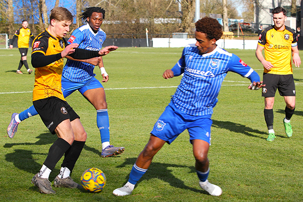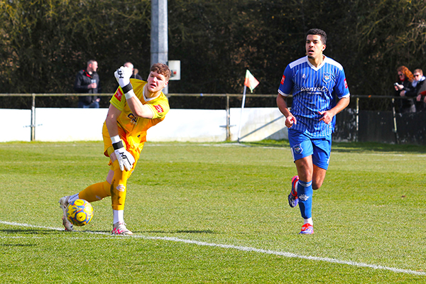 It was after 79 minutes that Northwood finally made some inroads as Jalloh played a neat ball to find Bates who had ventured forward and he did well to get a shot on goal under pressure but it didn’t have quite the power to beat diving keeper Tyler McGregor who made his only save of the match.