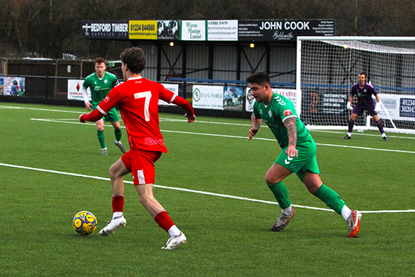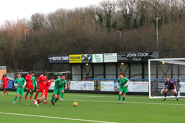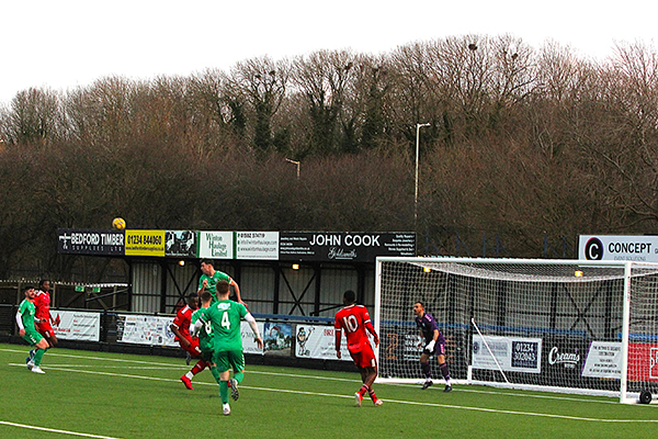 The home side had dropped points in a midweek draw against bottom club North Leigh but the Woods were unable to exploit any lack of confidence in the early stages of the contest as Biggleswade were in front after just 10 minutes. Former Woods midfielder Charlie Hayford recycled his own corner to knock in a low ball and Lawrie Marsh managed to squeeze a shot in at the near post.