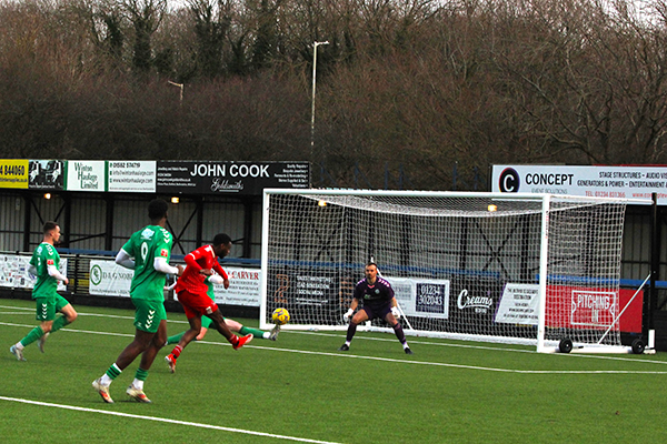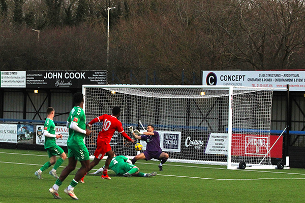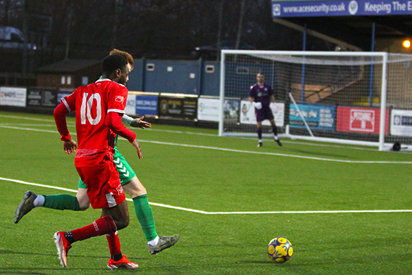 After another spell where the home side had more of the ball but without threatening, Northwood finished the half well. After 40 minutes, a loose ball ran kindly to Hassan Jalloh in the box but he was denied by an excellent reflex save from Crowley. Folarin pounced on the half-cleared ball from distance but his strike was inches wide of the target.