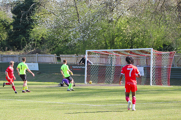 The visitors had Kessel booked for diving in the penalty-area on a rare attack while Bradley Clayton swung in a left-footed curling free-kick which Watkiss just managed to tip over the bar to deny him. The fourth goal wasn’t far away though and Biggleswade hadn’t learned from earlier as Perez-Duah turned provider, playing a corner to the corner of the area and this time it was Rio Connell who was in space and let fly with a shot that saw him net his first for the club.