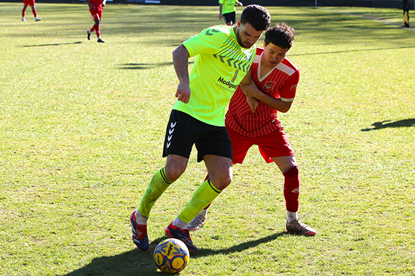 shine by wearing a kit of bright “hi-viz” safety yellow shirts and they made a bright start to the game in the opening ten minutes with a couple of good balls into the box and Ethan Kessel going close.