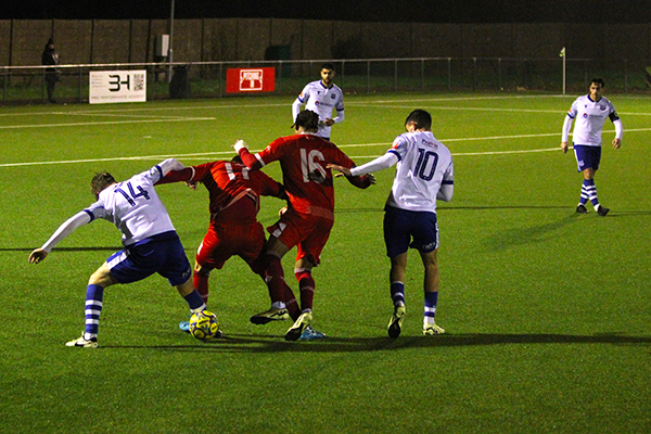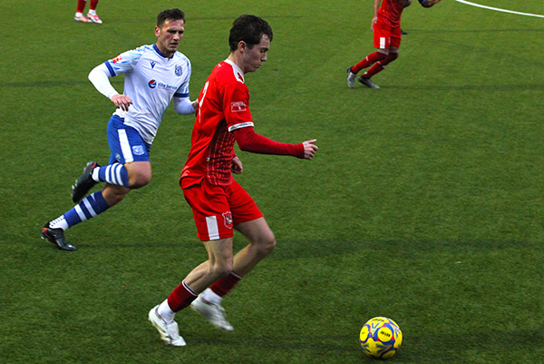 Enfield continued to struggle with the wind behind them and didn’t notch their first effort on goal until the 39th minute when a shot from Brad McClenaghan flashed well wide of the post and the Woods finished the half strongly. On 43 minutes they should have been ahead as Troy Perez-Duah won possession the Enfield box and played it to Harry McKenna. His shot was pushed across goal by Johnson but straight into the path of Alex Cathline who somehow lifted his strike over the bar just eight yards out from the gaping goal. The half wasn’t over as Cathline was put through on goal again a minute later but Johnson was equal to his shot again, getting his left-hand to his shot which rebounded safely back to him off a defender’s foot.