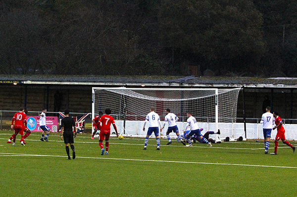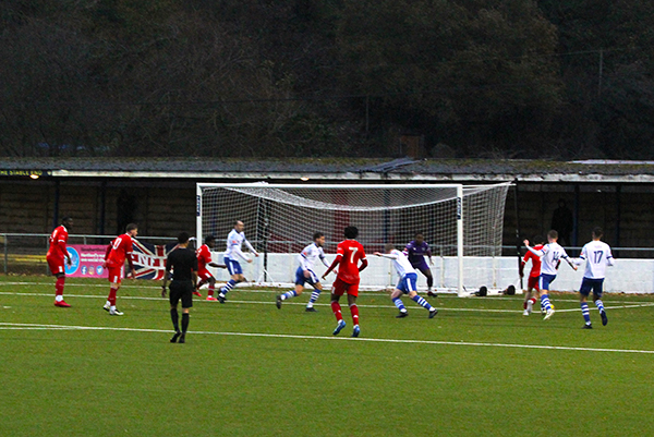 But three minutes later, it all went wrong for the Woods. Manny Folarin conceded a free-kick just outside the area on the Enfield left flank, picking up a yellow card and from the resulting free-kick, the ball was flighted superbly across goal to dip inside the far post by skipper Rob Clark.
