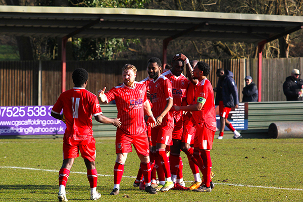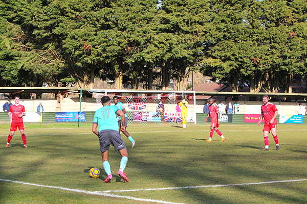 Just two minutes later, the E’s launched their first attack and after Ajanlekoko headed away a cross, the ball fell to Jack Taylor who hit a sweet right-foot shot low into the bottom corner to give Aymen Azaze no chance and Northwood were behind early once again.